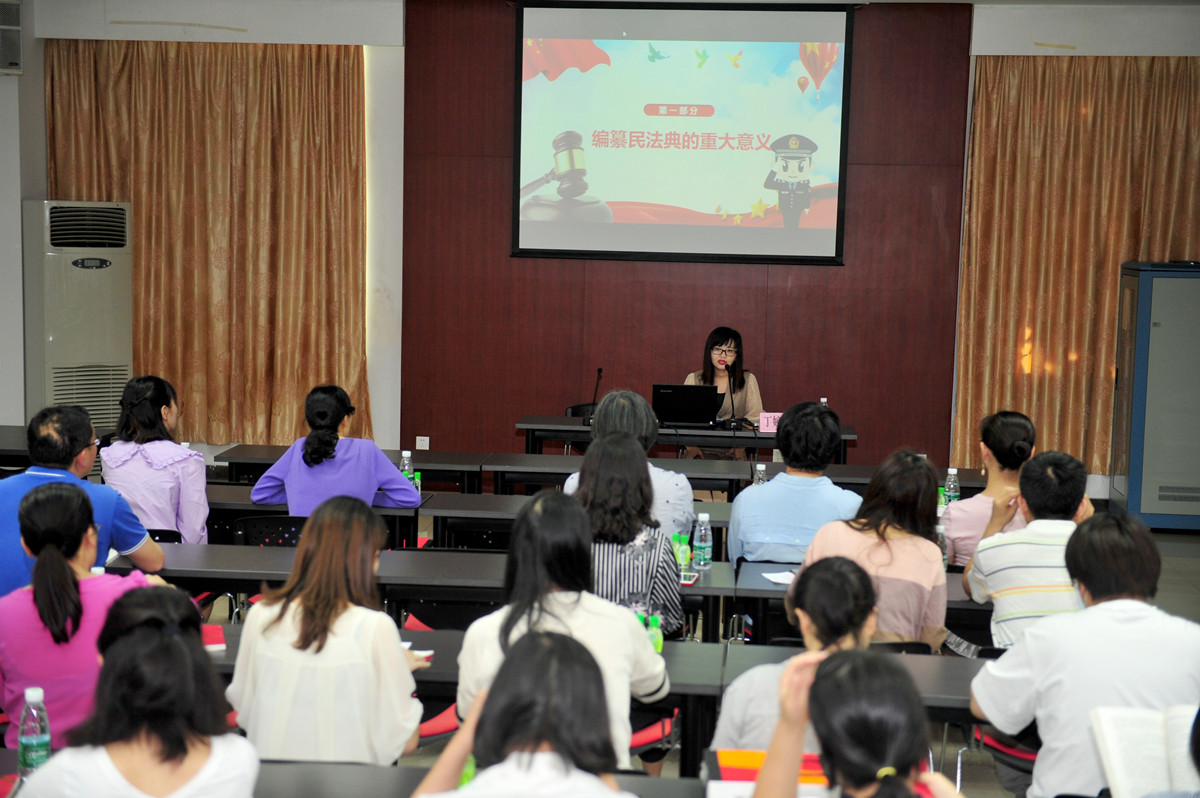 为加强《民法典》的学习宣传,增强教职工维护自身合法权益的意识,提升知法、懂法、用法的能力,校工会于3月31日下午,特邀广东博谦律师事务所合伙人丁婷婷律师开展“典”亮生活 与法同行——解读《民法典》专题讲座。