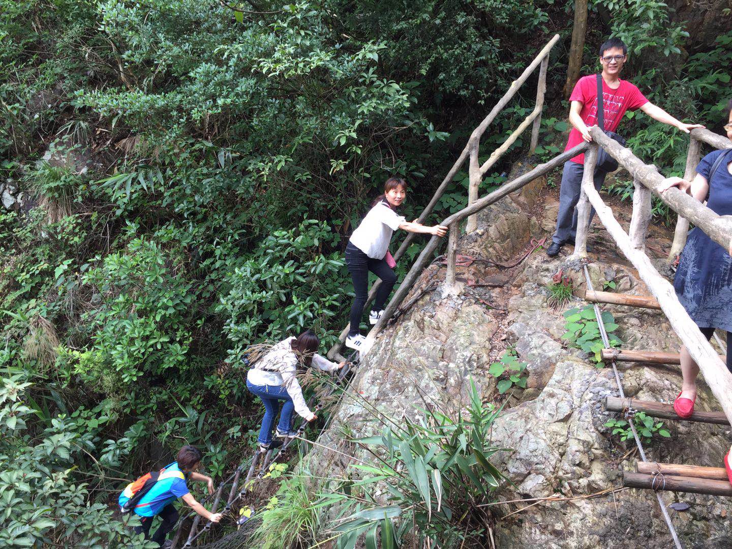 5月12日校工会组织教职工到清远牛鱼嘴原始生态风景区进行春游活动,校本部共有二百多名工会会员参加。牛鱼嘴原始生态风景区座落于素有“岭南原始亚热带植物王国”之称的清远大帽山上,景区内亚热带植物众多,绿树成荫,流水潺潺。会员们兴致勃勃地溯溪而上, 拉索探险、云梯攀岩、走玻璃桥、坐飞龙滑道,既刺激又安全。春游活动让大家欣赏了自然风光的美妙,又增进了同事之间的感情,显