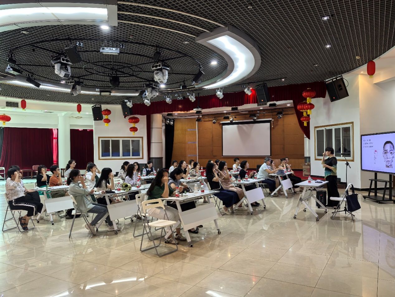 张正教授以深入浅出的方式,为到场的教职工详细讲解了面部刮痧的机理、作用及操作方法。她指出,头面部刮痧不仅能缓解疲劳、醒神助眠,还能通过加快血液循环,排出毒素和代谢废物,刺激皮肤胶原再生,从而达到美容养颜的效果。