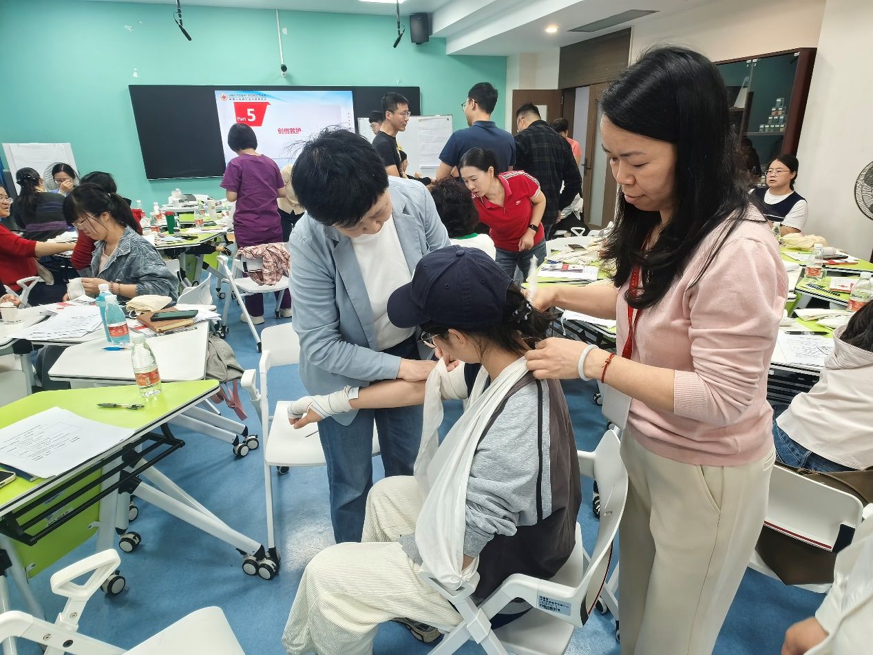 培训结束后,全体学员参加了理论与实操考核,通过者将获得中国红十字会救护员国际认证证书。此次培训护理学院提供了专业设备、学习场地和助教服务,严格落实考勤与安全管理要求,保障活动顺利开展。参训教职工纷纷表示,此次培训内容系统且贴近实际,极大增强了自身应对突发状况的信心。“老师讲解清晰细致,课堂氛围既严谨又活跃,希望未来能多举办此类实用技能培训!”