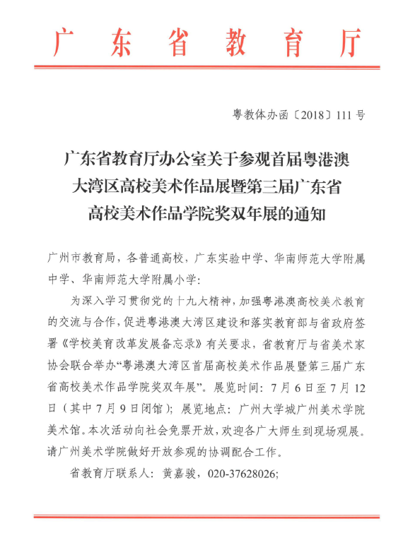 转发广东省教育厅办公室关于参观首届粤港澳大湾区高校美术作品暨第三届广东省高校美术作品学院奖双年展的通知